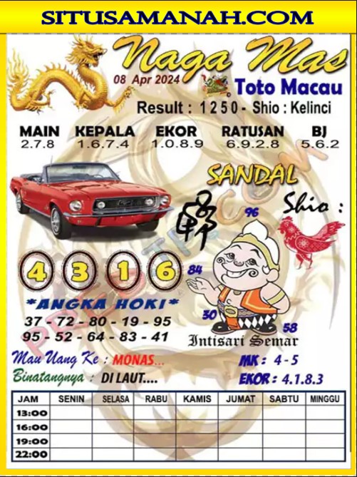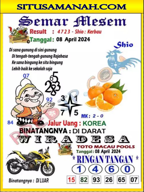 Syair TOTO MACAU salah satunya tipe prediksi togel yang dibikin melihat pola beberapa angka yang ada dalam togel. Syair ini dibikin oleh banyaknya ahli syair yang pakai pengalaman dan hasil tinjauan mereka untuk putuskan beberapa angka yang dapat keluar dalam togel. Maka pemain togel dapat kian mudah untuk menerka angka yang dapat keluar. Tak hanya itu, syair Toto Macau pula bisa membantu pemain togel untuk memperhitungkan angka yang bisa keluar di hari selanjutnya. Dengan begitu, anda bisa mendapatkan keuntungan yang tambah makin lebih besar dalam judi togel Toto Macau.
