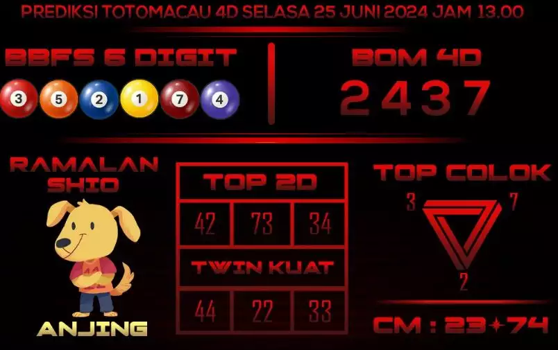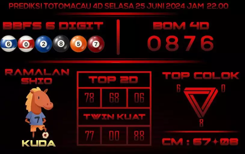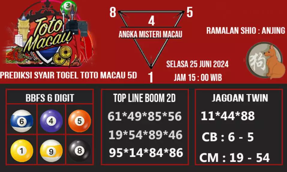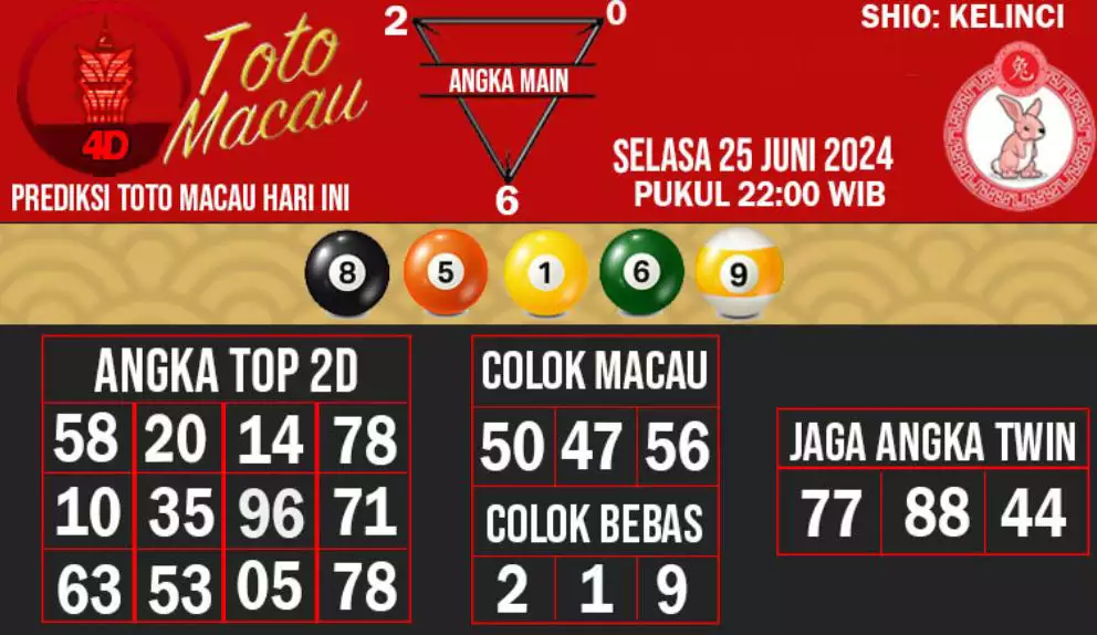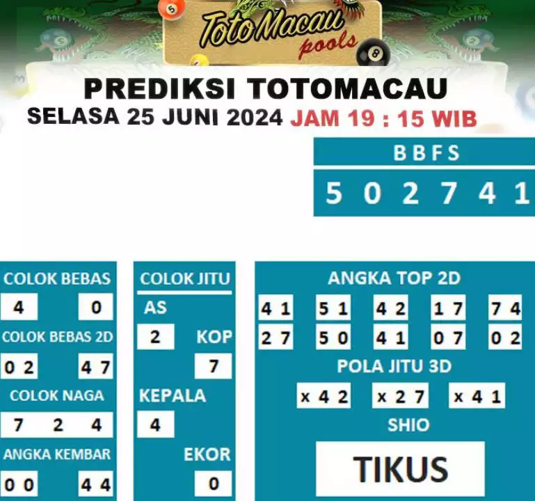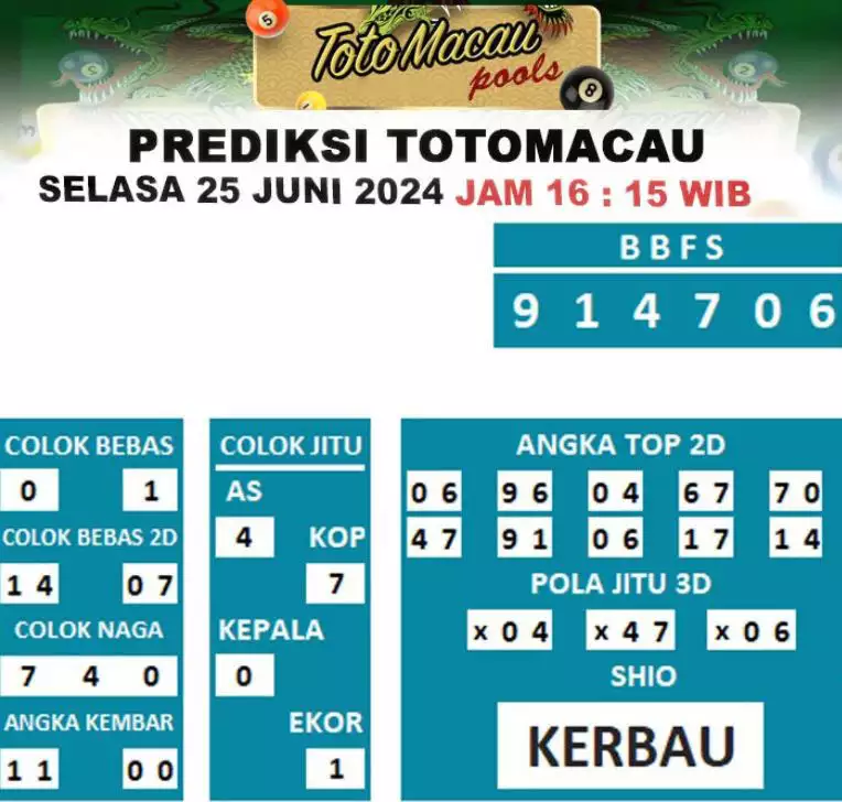 Syair Togel Toto Macau Jitu Hari Ini berisikan ramalan beberapa angka yang dapat keluar dalam togel Toto Macau. Rerata syair ini berisi beberapa angka yang dapat keluar di hari selanjutnya. Syair ini rerata berisi beberapa angka yang tidak sama dan beberapa angka yang ditetapkan teliti oleh banyaknya ahli syair. Dengan begitu, anda bakal mendapatkan kemenangan tambah makin lebih besar dalam judi togel Toto Macau.
